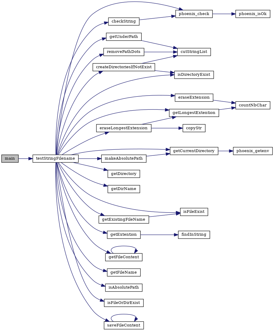 References checkString(), createDirectoriesIfNotExist(), eraseExtension(), eraseLongestExtension(), getCurrentDirectory(), getDirectory(), getDirName(), getExistingFileName(), getExtention(), getFileContent(), getFileName(), getLongestExtention(), getUnderPath(), isAbsolutePath(), isDirectoryExist(), isFileExist(), isFileOrDirExist(), makeAbsolutePath(), phoenix_assert, phoenix_check(), removePathDots(), and saveFileContent().
